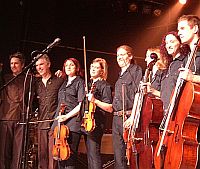 a nije bilo preznojavanja ili naguravanja kao na prekrcanim Faithless ili Asian Dub Foundation. Reklo bi se, taman. Dva autobusa auto oznaka Velike Britanije smještena na stražnjem ulazu u Tvornicu su nam "prišapnula" kako ćemo prisustvovati spektaklu, jer na pozornici nas je dočekao Byrne sa svojim mnogočlanim bendom (njih deset točno) i obiljem opreme. A bend je bio izvanredno raspoložen, krenuvši od briljantnih šestero gudača ("The Tosca Strings"), preko fenomenalnog basiste, pa do čovjeka zaduženog za drum sekciju koji je neprestano izmjenjivao glazbene rekvizite i nekoliko puta doživio gromoglasno odobravanje publike.