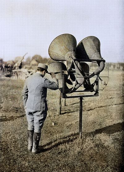 Francuski vojnik na Zapadnoj fronti s akustičnim uređajem za praćenje neprijateljske avijacije