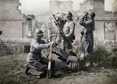 Francuski vojnici zauzimaju položaj tijekom bitke kod Aisnea, godina je 1917.
