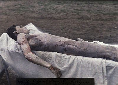 Leš francuskog vojnika, pripadnika 99. pješačke regimente, ubijenog u napadu bojnim otrovom koji se dogodio 23. ožujka 1918. godine