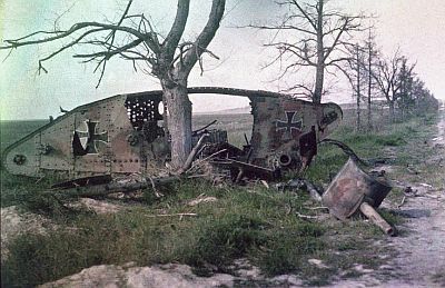 Ostaci njemačkog tenka uništenog tijekom bitke na Zapadnoj fronti