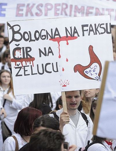 Koliko je Bolonja u banani sjetili su se javno reći jedva par mjeseci prije nego što će prva generacija prvostupnika nagrnuti na tržište rada. A koliko god željeli u ovom prosvjedu prepoznati nešto hvalevrijedno, teško se oteti dojmu kako su na kraju studenti ispali samo nadrkana gomila koja ne zna što točno hoće. Tijekom prosvjeda nisu kontaktirali niti išli razgovarati službeno niti s fakultetima, niti sa Sveučilištem niti s Ministarstvom. Ispada da su samo htjeli pokazati koliko su bijesni, demonstrirali su moć ali - što s tim?