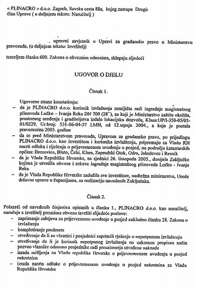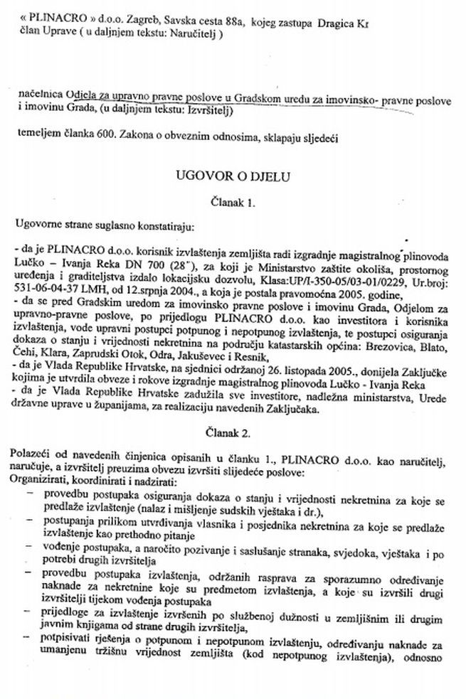 Ova nevjerojatna priča govori nam kako je prije gotovo desetljeća Plinacro platio oko šest milijuna kuna državnim službenicima da bi ubrzao proces izvlaštenja zemljišta koja se nalaze na trasi po kojoj je predviđena izgradnja plinovoda Lučko – Ivanja Reka, odnosno Pula – Karlovac. Plinacro, kojeg je zastupala članica Uprave Dragica Krpan, s državnim je službenicima u Ministarstvu pravosuđa, Gradu Zagrebu te Gradu Rijeci potpisivao ugovore o djelu u kojima ih je obvezao da za novčanu naknadu moraju izvan radnog vremena (od 16 do 20 sati, kako je svima određeno) raditi na predmetu izvlaštenja s ciljem ubrzavanja čitavog procesa. Neki su službenici za prekovremeni rad plaćani po spisu, neki po satnici, a neki i po spisu i po satnici.