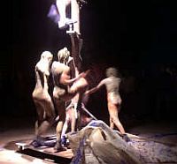 Neki od vas začudit će se zašto baš ovako počinjem s dojmovima s ovogodišnjeg Eurokaza, ali zbilja je ovo jedan od logičnih načina, pogotovo nakon pogledane španjolske predstave "XXX" koja je digla veliku prašinu, još i prije samog izvođenja. Vjerojatno su zbog toga i planule karte, i to po vrlo nepristupačnoj cijeni od 150 kuna. Već na pressici obaviješteni smo da je mlađima od 18 godina zabranjen upad, baš kao i fotografiranje zbog "nezgodnih" scena! Možda su upravo te nezgodne scene bile razlog tome što je u publici bilo podosta sredovječnih muškaraca. Vjerojatno je nekima od njih upravo to način razbijanja monotonije bračnog života, u nadi da će im one stvari slijedeći tjedan stajati poput jarbola.