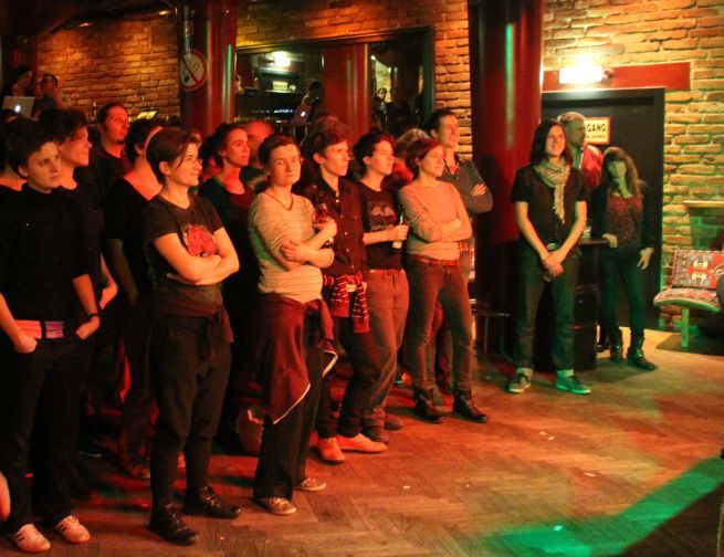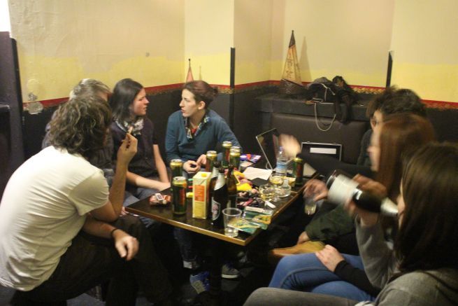 U green roomu ponovno opušteno - za razliku od ostatka kluba, ovdje se može neometano uživati u trovanju duhanom. "Tim novinari" je sretan. Prilazi nam nekakav momak s brkovima i u radničkom odijelu, pogledava nas kao da nas poznaje, na što odvraćamo nedefiniranim odzdravljanjem kakvo priliči situaciji: "'Ko je, pak, ovaj?".