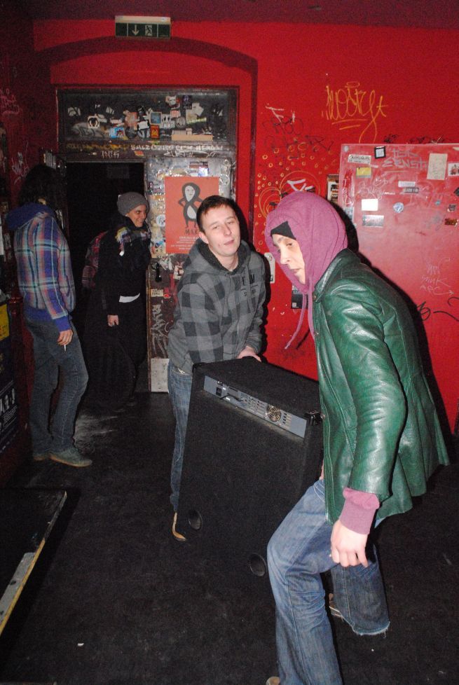 Stižemo u klub Ost, koji se nalazi preko puta spomenika sovjetskim borcima u Drugom svjetskom ratu. Treba ponovno tegliti svu tu opremu, što je u prošlosti znalo dovesti do nesporazuma.