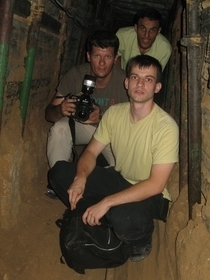 Nakon kratkog nagovaranja, dopušten nam je ulazak u 12 metara dubok i pola kilometra dugačak tunel. Spuštamo se niz okno rasklimanim ljestvama, te dolje zatječemo dva momka, koji nas uvode u tunel. Vruće je, zagušljivo, zrak je težak i ispunjen mirisom benzina. Na podu prolazimo pokraj napola prerezane plastične bačve, čeličnom sajlom povezane s jednim, odnosno drugim krajem tunela; to su kolica kojima se razmjenjuje roba. Sa svakim našim pokretom, bez obzira koliko pažljivim, pijesak otpada sa zidova i plafona. Nažalost, ne uspijevamo doći na drugi kraj. Na jednom mjestu tunel je tako uzak da bismo dalje mogli proći samo puzajući na trbuhu, a upravo na tom mjestu kopači nam pokazuju kako je tunel nesiguran. Radovi još nisu gotovi, treba ga poduprijeti gredama, a dotad bi se u svakom trenutku mogao urušiti. Povratak je brz, sajlom na motorni pogon nas dižu gore. Tek nakon izlaska shvaćamo koliko je blizu Egipat – stražarski toranj egipatske vojske stotinjak je metara daleko od nas.