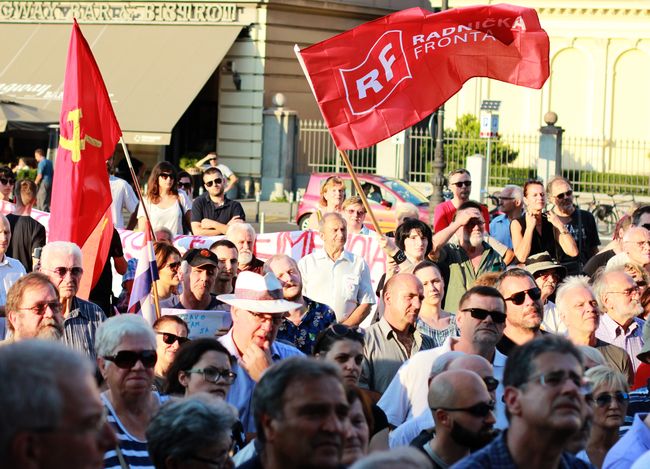 Radnička fronta na prosvjedu za Trg maršala Tita (FOTO: Lupiga.Com)