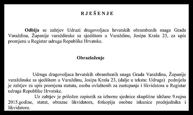 "Opis pečata i znaka Udruge u suprotnosti je sa Zakonom o udrugama i Ustavom Republike Hrvatske", kratko su zaključili iz resornog ureda Varaždinske županije.
