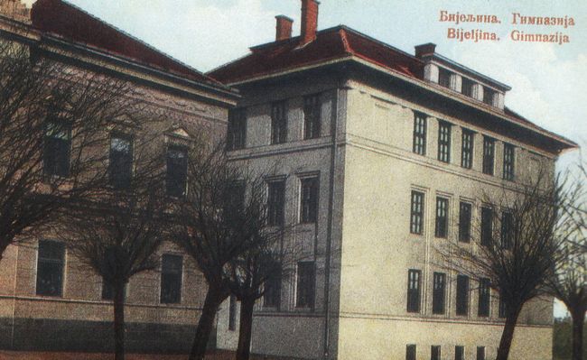 Razglednica s motivom bijeljinske gimnazije (ILUSTRACIJA: Preporod)