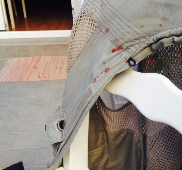 Pojedini su mediji objavili da su "domoljubi" na Plesu pokušali napasti Ivančića. Fleke na prsluku vele da nisu stali na pokušaju. (FOTO: Lupiga.Com)