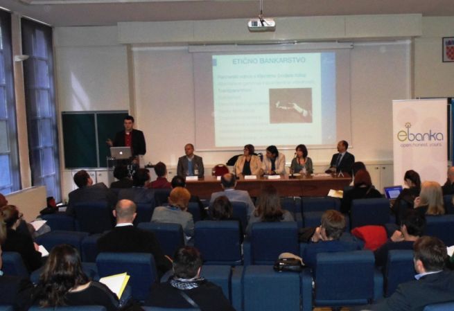 "Moja prva reakcija kada sam čuo da se u Hrvatskoj organizira grupa ljudi s namjerom da pokrene e-banku bila je: 'Ma je, sigurno'", kazao je Dražen Šimleša iz Zelene mreže aktivističkih grupa (ZMAG), jedan od govornika na ovom neobičnom događaju. No, ispostavilo se da je u krivu. Ne samo na njegovu nesreću (ili na sreću?), etične banke zaista postoje, samo ne u Hrvatskoj. Bar ne zasad. Šimleša je iznio podatak koji je 2010. godine obznanio čelnik Međunarodnog saveza zadružnih banaka Jean Louis Bancel, a taj kaže da čak 21 posto svih depozita u Europi drže upravo ovakve banke-kooperative. Dakle, ova priča nije nimalo neozbiljna.