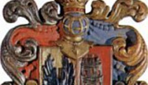 Najstariji grb nalazimo oko 1300. godine na pečatu (jedno orlovo krilo). Kasnije vidimo da se radi o crnom krilu na crvenom polju. Kroz 14. stoljeće pojavljuju se dva krila.