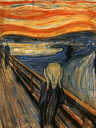 Strahovi koji su progonili umjetnika dobivali su često opći i dvosmisleniji, iako ne manje stravičan izraz. Na slici Večer u ulici Karla Johana, Oslo prolaznici u ranoj večernjoj tmini preobraženi su u sablasni skup mrtvih šetača. Krik je bolni vrisak prenesen u vidljive vibracije koje se šire kao zvučni valovi. Na Crvenoj lozi loza pretvara kuću u užasno obitavalište iz kojeg jedna osoba uspaničeno bježi.