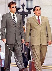 krajne iskarikiran do komičnosti i u film unosi malo vedrine, iako je on zapravo negativac No2, no ipak je to lik uz kojeg se gledatelj najlakše veže, te je umnogome simpatičniji od glavnog junaka. Mogućnost preglumatavanja Farrell je zbilja iskoristio na pravi način, pa nije ni čudo što je upravo on dobio glavnu ulogu za Phone Booth. Kad smo već kod vedrine, u film je unosi i Mattov odvjetnički partner i najbolji prijatelj (neobično poimanje prijateljstva) (Jon Favreau) koji je ujedno s Farrellom jedini simpatičan lik cijeloga filma. On nam prodaje fore podvaljivanja Mattu, primjerice za zaslađivanje čaja umjesto meda ovaj mu podvali senf, pa na kraju on sam zabunom gucne čaj sa senfom. Simpatično, ali ne ostavlja neki značajniji trag na konačnu sliku. S druge strane Benova gluma je toliko loša da je uopće neću komentirati, ali stvarno neću.