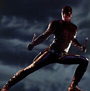 krajne iskarikiran do komičnosti i u film unosi malo vedrine, iako je on zapravo negativac No2, no ipak je to lik uz kojeg se gledatelj najlakše veže, te je umnogome simpatičniji od glavnog junaka. Mogućnost preglumatavanja Farrell je zbilja iskoristio na pravi način, pa nije ni čudo što je upravo on dobio glavnu ulogu za Phone Booth. Kad smo već kod vedrine, u film je unosi i Mattov odvjetnički partner i najbolji prijatelj (neobično poimanje prijateljstva) (Jon Favreau) koji je ujedno s Farrellom jedini simpatičan lik cijeloga filma. On nam prodaje fore podvaljivanja Mattu, primjerice za zaslađivanje čaja umjesto meda ovaj mu podvali senf, pa na kraju on sam zabunom gucne čaj sa senfom. Simpatično, ali ne ostavlja neki značajniji trag na konačnu sliku. S druge strane Benova gluma je toliko loša da je uopće neću komentirati, ali stvarno neću. Zapravo moram priznati da sam se jedno vrijeme zaozbiljno pitao je li ovo ozbiljan film ili parodija na nešto, pogotovo otkada sam vidio scene tučnjava i borbi, koje su u najmanju ruku smiješne, a tek kad vidite kako Ben Affleck trči … Mislim, nešto potpuno neuvjerljivo, osim ako nas nisu htjeli uvjeriti upravo u realističnu neuvjerljivost, što dakako nema logike, jer sjetimo se, riječ je o stripu gdje je gotovo sve moguće. Mene jednostavno podsjeća na neugodnu i bezukusnu mješavinu Charliejevih anđela i Batmana, s tim da su oba ova filma nekoliko klasa kvalitetniji od Daredevila. Na kraju krajeva akcijski koreograf i jeste radio na Charlie's Angels, pa odatle i dolazi ta sličnost. Možda bi bilo bolje da je taj posao dobio njegov brat, koji je radio Matrix i Tigar i Zmaj. Nije da tu nema odlično urađenih specijalnih efekata. Ima, a tu pogotovo mislim rad sa sjenom, koji je vrhunski. Treba pohvaliti i koreografiju, što i nije nešto s obzirom koliko je radnika zaposlenih samo na tom zadatku. Ipak konačni dojam oni ne povećavaju ni za jedan posto.