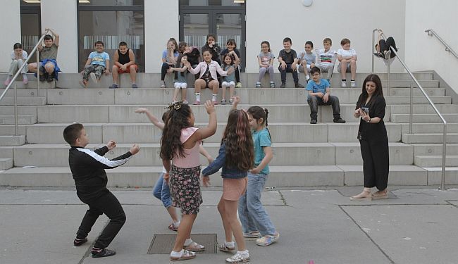 Specifikum javnih škola u distriktu je, pak, taj da u njima natpolovičan broj učenika kod kuće ne govori njemačkim jezikom, budući da su djeca pripadnici ili prve ili druge generacije imigranata (potomci „pravih” Austrijanaca iz Beča, pa čak i iz tog radničkog kraja, po pravilu idu u privatne ili makar u crkvene osnovne škole). Jedan razred iz te najveće državne osnovne škole, učenici i njihova učiteljica, bili su predmet interesa poznate dokumentaristice u periodu od tri školske godine, od početka drugog do kraja četvrtog razreda.
