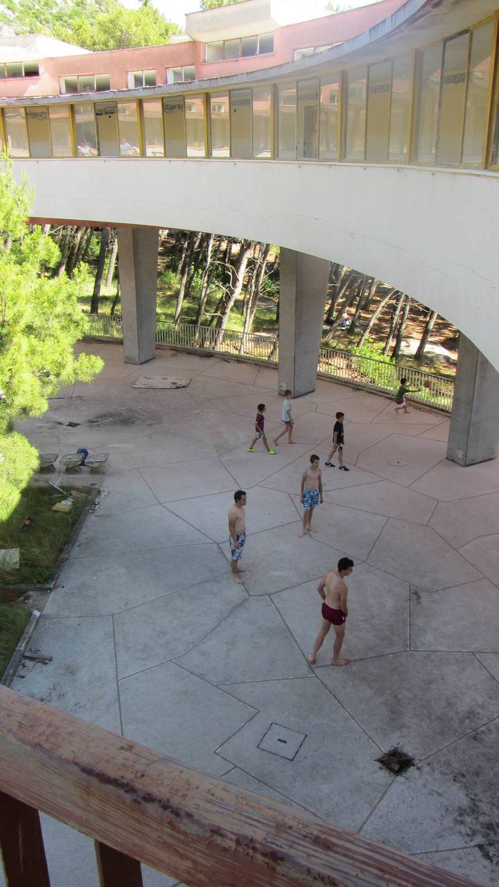 Nakon što je 1989. godine Hotel Jadran posljednji put primio goste, do sredine devedesetih u njemu su živjele izbjeglice, a danas zjapi devastiran i prepušten zubu vremena. Stotinjak soba s impresivnim spiralnim stubištem, ljetna terasa s koje se pruža prekrasan pogled na srednjodalmatinske otoke te velika dvorana za ples, danas su tek tužan podsjetnik na zlatne dane tog modernističkog bisera arhitekture. Njegova sudbina slična je brojnim hotelima-ruševinama na Jadranu, koji zbog neriješenih vlasničkih odnosa i lokalnih politika, i dalje nemaju neku jasnu viziju revitalizacije. Slučaj je to i s hotelom Krvavica, koji je za vrijeme Jugoslavije služio kao odmaralište za djecu s respiratornim problemima. Danas je u vlasništvu države i jedino što podsjeća da se tu nekad orio dječji smijeh, jest velika terasa na kojoj smo zatekli lokalnu djecu kako igraju na nogomet. Više o ovoj priči pročitajte na ovom linku.