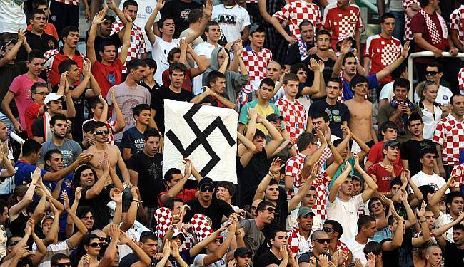 Za koju godinu neće biti dovoljno kiselinom žigosati poljudski travnjak, tijelima iscrtati svastiku na gostovanju reprezentacije, ili podignuti desnicu na nacistički pozdrav, za izazivanje skandala međunarodnih razmjera (FOTO: ekstrabladet.dk)