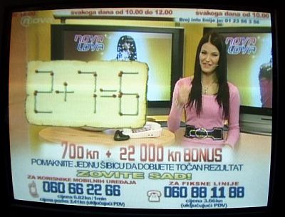 Eto ga. 3x3,60 = 10,80. U nekoliko minuta ukrali su mi najmanje 11 kuna, ali mislim da je bilo i više. A cura govori i govori i opet u zadnjem trenu "netko nazvao". U pola sata tri poziva. I onda kontam, koliko je nezaposlenih nazvalo u ovih pola sata dok sam gledao i koliko je NOVA obrnula love, dakako, s TELEKOMOM u suradnji.