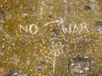 I valjda mi je baš ta energija okrenula glavu prema zidu punom lišajeva. I valjda me je baš ona naterala da primetim cvetić i jednostavnih pet slova urezanih nekim običnim ključem ... ‘no war’.