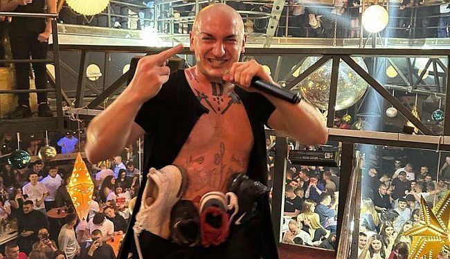 - Ovog ljeta je u Budvi “pravio gibanicu”, tako što je po publici rendao kačkavalj, lupao svježa jaja i redao kore po njihovim licima, a onda i banana split tako što je prvo rukama vadio porodični sladoled iz plastične kutije, pa ga zatim fanovima gurao u usta. Na kraju je sjeckao banane po ljudima i isprskao ih šlagom.