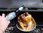 Priprema: klasično pripremiti pile, što znači dobro ga očistiti, te posoliti izvana i iznutra. Sastrugati naljepnicu sa pivske boce, oprati bocu, otvoriti je i popapriti. Ugurati pivu u pile i postaviti je okomito tako da se tijekom pečenja (pri 200 stupnjeva) događa slijedeće: pivski sok curi po piletu. Dobar tek!