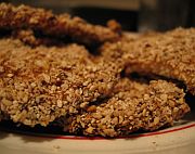 Ovo je samo još jedan način kako da fino bijelo pileće meso narezano na tanke šnicle uronite na orginalniji način u tavu punu ulja. Sve što vam treba je par pilećih šnicli (pureće su također dobro došle), jedno jaje, žlica meda, sol, malo prezla i nešto sezama. Umutite jedno jaje, u koje dodajte žlicu meda i malo soli. U posebnoj posudi pomiješajte prezle i sezam (najbolje integralnog-smeđeg) u omjeru jedan na prema tri. Nasoljene šnicle uronite u jaje i tako natopljene uvaljajte u smjesu prezli i sezama. Na taj način šnicla je dobila svoju košuljicu u kojoj može slobodno zaplivati u dubokoj tavi dobrano ispunjenoj uljem.