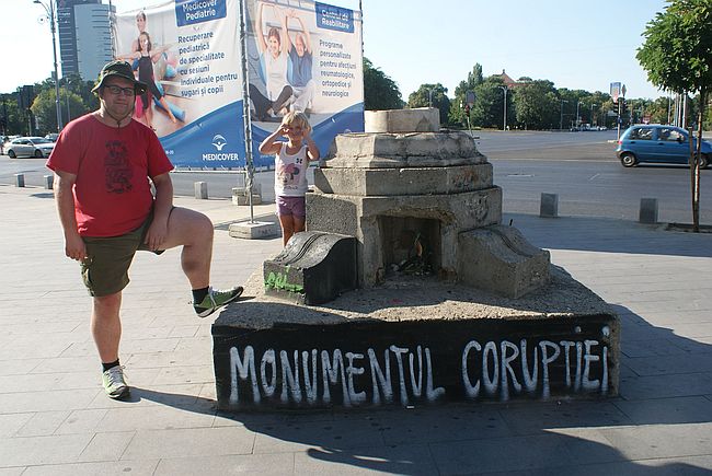 Autor putopisa kod spomenika korupciji (FOTO: Lupiga.Com)