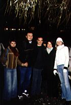 Usput se zbio događaj koji je pozitivno iznenadio neke od nas. Slikali smo se na ulici i prišlo nam je dvoje mladih i krajnje ljubazno nas pitali da li hoćemo da nas fotografiraju sve zajedno, jer ovako uvijek netko od nas četvero mora fotkati. No, ja sam uslikao sve njih zajedno (to su ovo dvoje s ultra crvenim očima na dvije slike, jednoj "ozbiljnoj" i drugoj -"zabavnoj") jer mi se to učinilo zanimljivijim, a ne zato što sam pomislio da bi nam eventualno mogli maznut' onaj već spominjani skupocjeni fotoaparat uz onu foru: Ne vidim vas sve, može još malo unazad. Takav postupak mladih Slove
