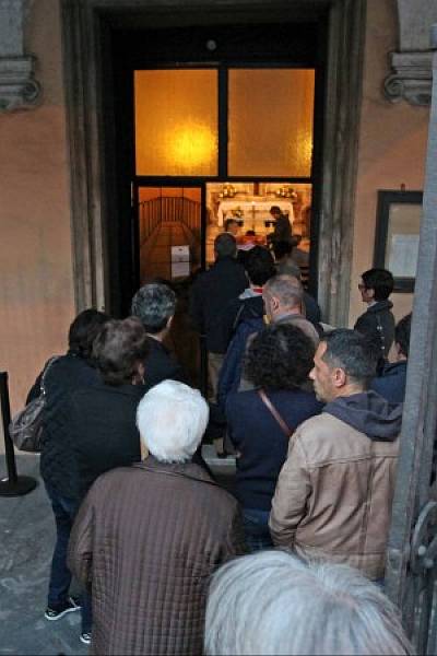 Brojni građani stoje u redu kako bi odali počast preminulom veliikanu (FOTO: genova.repubblica.it)