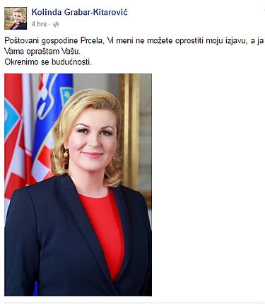 I nije to uopće isključeno. Kolindi Grabar-Kitarović nimalo nije zasmetao Prcelin show na HTV-u. Nije je zgrozilo što emitira javna televizija i stoga Kovačić i ekipa vjerojatno imaju slobodne ruke za slična programska iznenađenja. "Poštovani gospodine Prcela, Vi meni ne možete oprostiti moju izjavu, a ja Vama opraštam Vašu. Okrenimo se budućnosti", sve je što je predsjednica Republike napisala na Facebook-u. Nije bila potaknuta čak niti da još jednom naglasi da je NDH bila državna tvorevina temeljena na zločinu. Nažalost, ovaj put u njezinoj blizini nije bilo Amerikanca Deana.