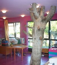 Sedam metara visoko drvo, u Ljubljanu dopremljeno s Učke, potom prerezano na nekoliko dijelova kako bi moglo biti uneseno u kuću, nakon čega je ponovno spojeno, bez vidljivih "ožiljaka". |