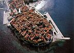 KORCULA, a town and port on the north-eastern coast of the island of Korcula, situated on a small peninsula which is connected with the island by a narrow isthmus; population 3,232. The surrounding coastal area is covered with pine forests. East of the port is a small group of islets. The climate is mild; an average air temperature in January is 9.8 °C and in July 26.9 °C; the island is famous for a long insolation. Economy is based on farming, growing of vines, olives and fruit, fishing, shipbuilding, stone processing, tourism and nautical tourism. The regional road connects the town of Korcula with all major places on the island. The port consists of the western and the eastern part. Korcula Marina is located in a cove on the eastern side of the town. Korcula has regular ferry lines with the mainland (Korcula - Orebic).