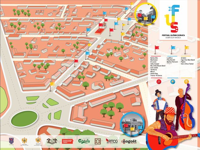 Izvođači koje smo spomenuli samo su djelić programa koji će FUS ponuditi na Nikšićkim ulicama. U gradskom parku, na glavnom nikšićkom trgu, na platou ispred Robne kuće i u Njegoševoj ulici nastupit će preko 30 izvođača iz više zemalja. Program FUS-a počinje u 17 sati, izvedbama namijenjenim najmlađim posjetiteljima, a zatim slijedi glazbeni fio festivala koji završava u ponoć. Prethodnih godina programe FUS-a gledalo je više desetaka tisuća ljudi, a od ove godine festival nudi i filmski dio, pri čemu je za selekciju filmova zadužen nikšićki redatelj Sejo Šabotić.