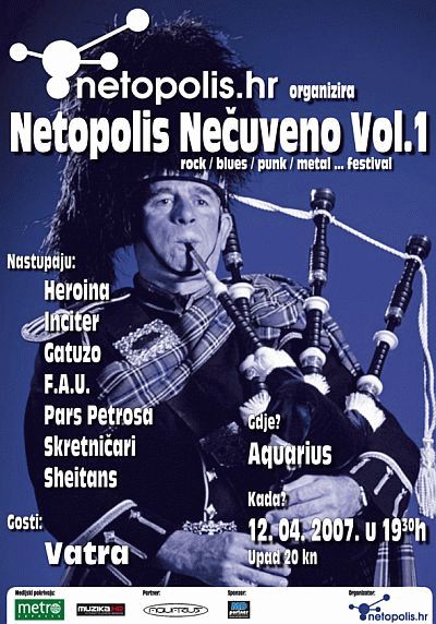 Na prvom godišnjem okupljanju neafirmiranih bendova u organizaciji NETOPOLIS.hr predstavit će vam se najbolji muzičari koji do sada nisu imali priliku izdati album. U Aquariusu će vas tako u četvrtak 12. travnja dočekati sedam bendova čija se eksplozivnost, snaga, brzina i želja za dokazivanjem može usporediti samo s mladim Rockyjem Balboaom.