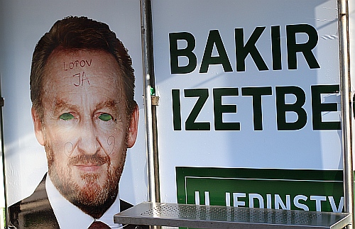 Plakat Bakira Izetbegovića na tramvajskoj stranici u Sarajevu (FOTO: Lupiga.Com)