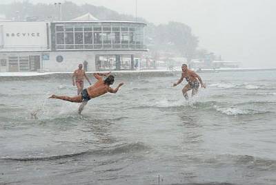 Njih četri se skidaju i utrčavaju u more. Balunčić se ne vidi od sniga. Igraju ka šišmiši na slipo. Ravnotežu zimskog dana održava skijašica u prolazu. Picigin i skijanje su u Splitu toliko normalni da sam se začudija kad su se stali slikavat. . Oni pinku manje hrabri, u bundama skandiraju i komentiraju kako ovo nema nigdi.