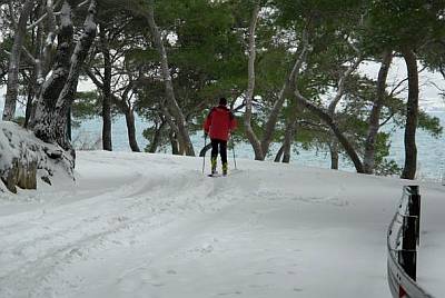 A ti se spustiš lagano do Rive, onako pažljivo, da ne završiš na prvu pomoć jer nemaš postole za snig. Tamo općenarodno veselje, sanjkaju se niz Marmontovu, grudaju se iza palme, kližu po onim pločama, galame stari i mladi, smiju se, slikavaju, dozivaju se i čuješ ciku i galamu ka da je Moira Orfej iskrcala slonove. Normalno da ćeš sa Rive skočit i do Bačvica. Valjaju se dica po snigu ispod Žbirca, vrte se zaljubljeni, pasi se zaliću u more. Ma sve ka u srid lita.