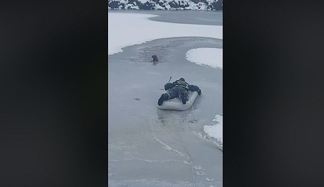 Pas se igrao na rijeci i u jednom trenutku propao kroz tanak led. Vatrogasci su se brzo organizirali i stigli sa zračnim madracem. Jedan o članova ekipe legao je na madrac i uspio se dovući do psa te ga, uz manje poteškoće, izvući iz ledene vode. Cijelo vrijeme su ga konopcima pridržavale kolege. Na video snimci se kraj spašavanja ne vidi, ali priča je završila sretnim krajem za psa.