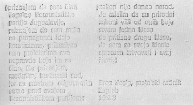 Izjava sa suđenja iz 1928. godine (FOTO: Titoville)