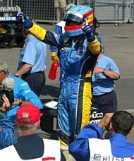 Montoya se zavrtio na stazi ali je uspio ostati na asfaltu i krenuti, Kolumbijčeva greška je omogućila Ralfu da se skroz približi. 'Približio se dosta blizu pa sam pitao momčad da li se utrkujemo i oni su rekli da, pa sam ubrzao i uspio mu malo umaknuti', objasnio je Montoya. Još jedna je zanimljivost da je Alonso prešao Michaela Schumachera, koji je bio na osmom mjestu, za cijeli krug! Na osmom mjestu je i završio, odmah iza Jarna Trullija kojeg nije mogao prijeći. Peti je završio Coulthard kojemu se isplatila taktika dva ulaska u boks. Šesti se do cilja dovezao Mark Webber nakon odličnog vikenda. Veliki dan za Alonsa i treba skinuti kapu mladom Španjolcu koji je ostvario svoju prvu pobjedu u 22. godini. Utrkom je dominirao uz malu pomoć Webbera na početku.