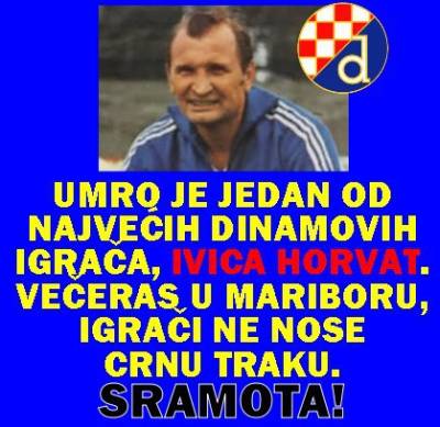 Službena komemoracija u četvrtak, u prostorijama Dinama, neposredno prije ispraćaja na Mirogoju. Je li to sve što je Ivica Horvat zaslužio? Ne treba pametovati, kad znamo kakva su vremena i što je na cijeni. Bilo bi, svejedno, zanimljivo čuti da li je ikome od igrača, koji su u utorak navečer istrčali na teren u Mariboru, palo na pamet kako bi bilo ljudski i kulturno, a i velika čast, imati na rukavu ili reveru crni flor. Stadion se, kao za inat, zove „Ljudski vrt“.