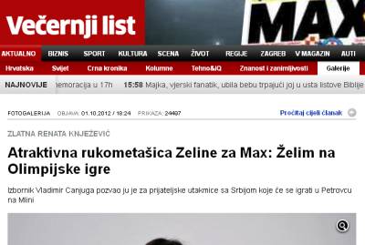 Jasno, tko radi, taj i griješi, ali svejedno ćemo zabilježit ovaj gaf Večernjeg lista. Naime, Večernji je donio nekoliko fotografija „atraktivne rukometašice“ Renate Knježević, posvetivši joj tek jednu jedinu rečenicu, pokazavši da je njen fizički izgled važniji od njene sportske karijere, u čemu im je ona sama svesrdno pripomogla, pristavši se „raskomotiti“ pred fotografskim objektivima.
