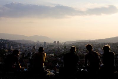 Samo dole, u dnu vidika, gde prestaje stari grad, i počinje slobodna ravnica, ima još trag dnevne svetlosti. U posrednom, rumenom odblesku već skrivenog sunca belasa se dim fabričkih dimnjaka i naslućuju krovovi novih naselja. Tamo novi ljudi novih naraštaja ovog starog grada zidaju i grade novo. Sporo i mučno, jer sporo i mučno se ostvaruju velike stvari, biće tamo dole u ravnici savladana prošlost, prevaziđena istorija. Ispod te na oko devičanske ravnice počivaju u bogatim naslagama tragovi preistorijskih naselja, mozaici i miljokazi rimske epohe i novac i oružje srednjovekovne Bosne, a na njoj se grade fabrike i stanovi i pomaljaju oblici novog života. Pomaljaju se sporo i mučno, ali sigurno, po neumitnim zakonima društvenog razvitka. I u koje god doba dana i sa koga god uzvišenja bacite pogled na Sarajevo, vi uvek i nehotice pomislite isto. To je grad. Grad koji i dotrajava i umire, i u isto vreme se rađa i preobražava.