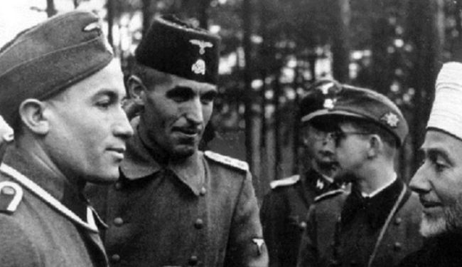 "Skroz mali, ako baš mora, fašist" Husein Đozo (lijevo) u "samo malo" nacističkoj uniformi u društvu sa slavnim "samo malo antisemitom" muftijom al-Huseinijem, "samo malim nacistom" Karl-Gustavom Sauberzweigom, pukovnikom Wermachta i zapovjednikom Handžar divizije te "samo malim ustašom" Milom Budakom (FOTO; US NaationalArchive)