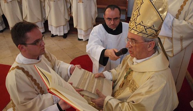 „Ako vjerujete da korona postoji, ona će vas i stići. Ja i svi vjernici koji vjerujemo u Isusa nismo dobili niti možemo dobiti koronu“, kaže don Tomislav Vlahović, župnik u Salima na Dugom otoku (lijevo na fotografiji, kleči pred nadbiskupom). Ako vam je ime ovog svećenika poznato to je stoga jer se prije nekoliko godina proslavio kada je kao policijski kapelan i župnik u selu Perušić nedaleko Benkovca glumio prometnog policajca i zaustavljao vozila građana na lokalnim cestama, prijeteći im batinama i uhićenjem. Taj je slučaj završio na sudu, svećenik je osuđen, ali i dalje obavlja svećeničku dužnost koja uključuje prodike o moralu i etici.