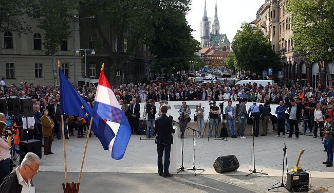 „Mislio sam da se nakon 2000. godine, kada smo ovome trgu uspjeli vratiti njegovo ime, više nećemo morati ovdje okupljati s istim porukama“, rekao je na početku Zoran Pusić, ali se očigledno prevario. Neposredni povod skupa „Jasenovac na Trgu žrtava fašizma“, na dan proboja logoraša iz Jasenovca, bio je bojkot službene komemoracije koja se toga jutra odvijala na mjestu najvećeg hrvatskog stratišta civilnih žrtava Drugog svjetskog rata. Političari su tamo, za razliku od prethodnih godina, pozvani da šute. Bila je to želja preživjelih logoraša. Političara na Trgu žrtava fašizma nije niti bilo, no po svemu sudeći bili bi jednako „dobrodošli“.