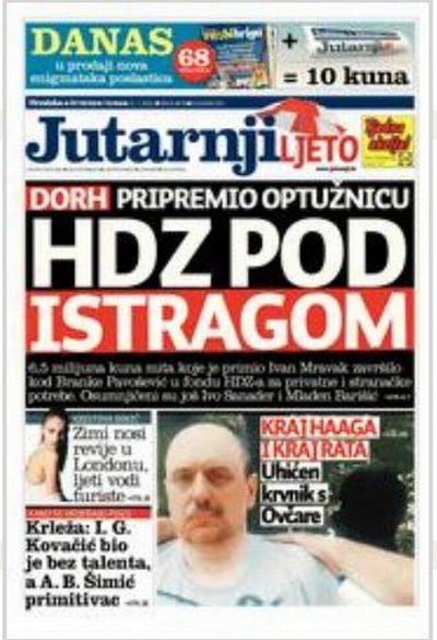Redakcija Mordora iz Koranske ulice, u narodu poznatog po imenu Jutarnji list, imala je sinoć pune ruke posla. Najprije su na naslovnoj stranici objavili da se Hrvatska Demokratska Zajebnica nalazi pod istragom Državnog odvjetništva, odnosno da je Odvjetništvo već pripremilo optužnicu protiv stranke na vlasti. Ova oprema im se učinila prejakom - ili ih je netko dobronamjeran uvjerio da je oprema prejaka - pa se preko noći "optužnica" pretvorila u "sumnju", a "istraga" u "izvide". Pogledajmo još jednom zašto ne kupujemo Jutarnji