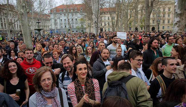 Tri tisuće za satiru spremnih okupilo se jučer na zagrebačkom Zrinjevcu, a već u 18 sati zauzeta su najbolja mjesta na travnjaku pred glazbenim paviljonom. Dok se park polako popunjavao, u prvim redovima isticali su se malobrojni političari, točnije nekoliko SDP-ovaca, te nitko od vladajuće garniture o kojoj je s pozornice bilo najviše govora. Ipak, nije to bio prosvjed, nego “više tulum” kako je za Treći Dnevnik HTV-a rekao Borna Sor iz News Bara. Nitko, naime, nije urlao, nije se tražila ničija smjena, a voditelj programa, Ivan Šarić, morao je više puta ponoviti pitanje „Jel' vam pun kurac svega?“ prije nego je dobio dovoljno glasan odgovor.
